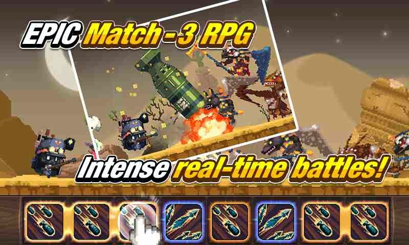• Real-time and fast paced puzzle combat! Match your heroes' skill blocks to quickly decimate your foes.